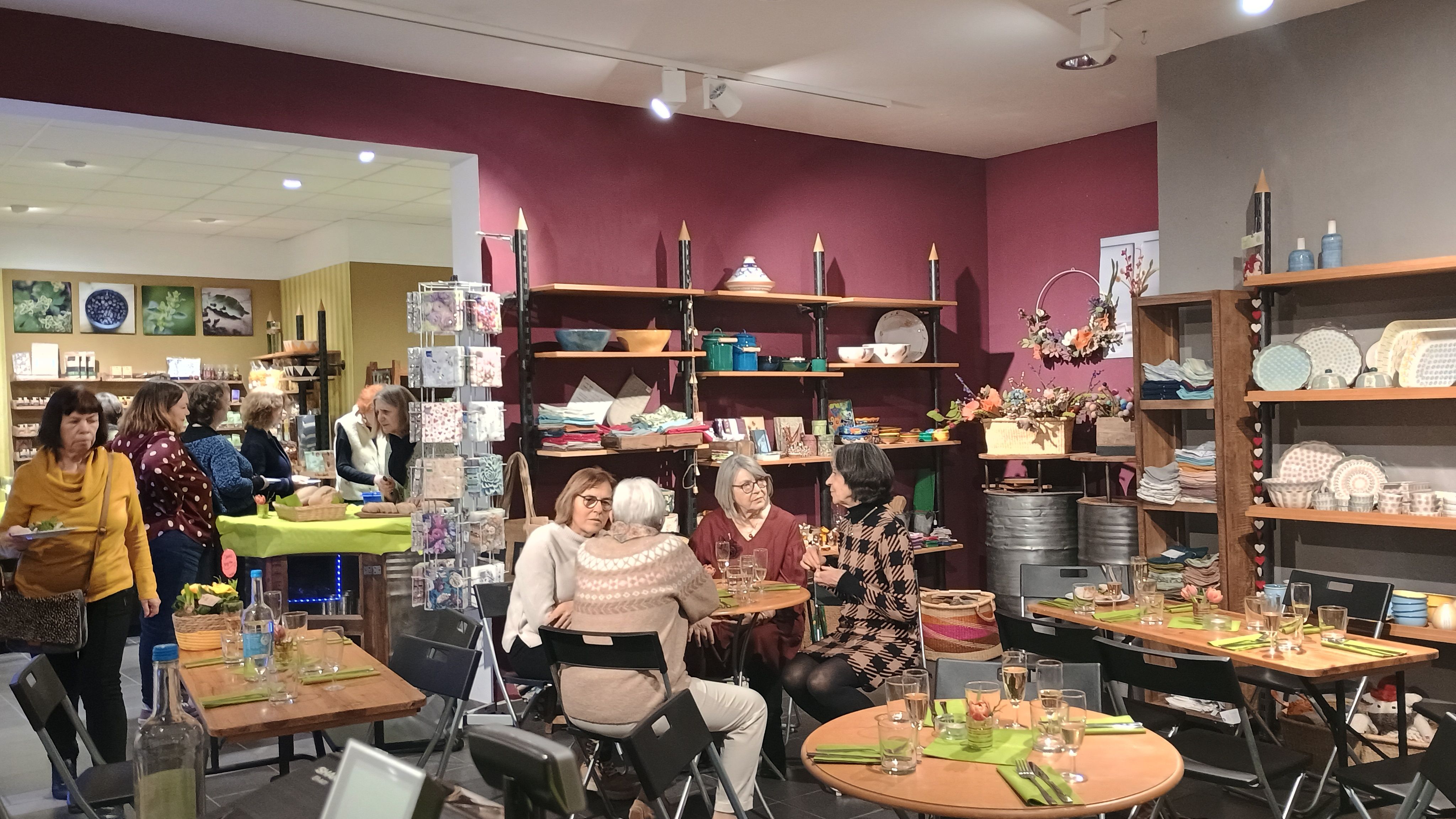 Die Geschäftsführerin Sibylle Enderle hob in einer kurzen prägnanten Begrüßung die Stärken dieser Damen hervor, die dann gerne mit Erzählungen und Erfahrungen aus ihrem Alltag im Laden ergänzt wurden – Interessantes, Kurioses, Einmaliges! Mit viel Fröhlichkeit und Gelächter genossen bei leckeren Getränken und einem kulinarischen Imbiss alle geladenen Gäste diesen Abend – es war ein gelungenes Fest!