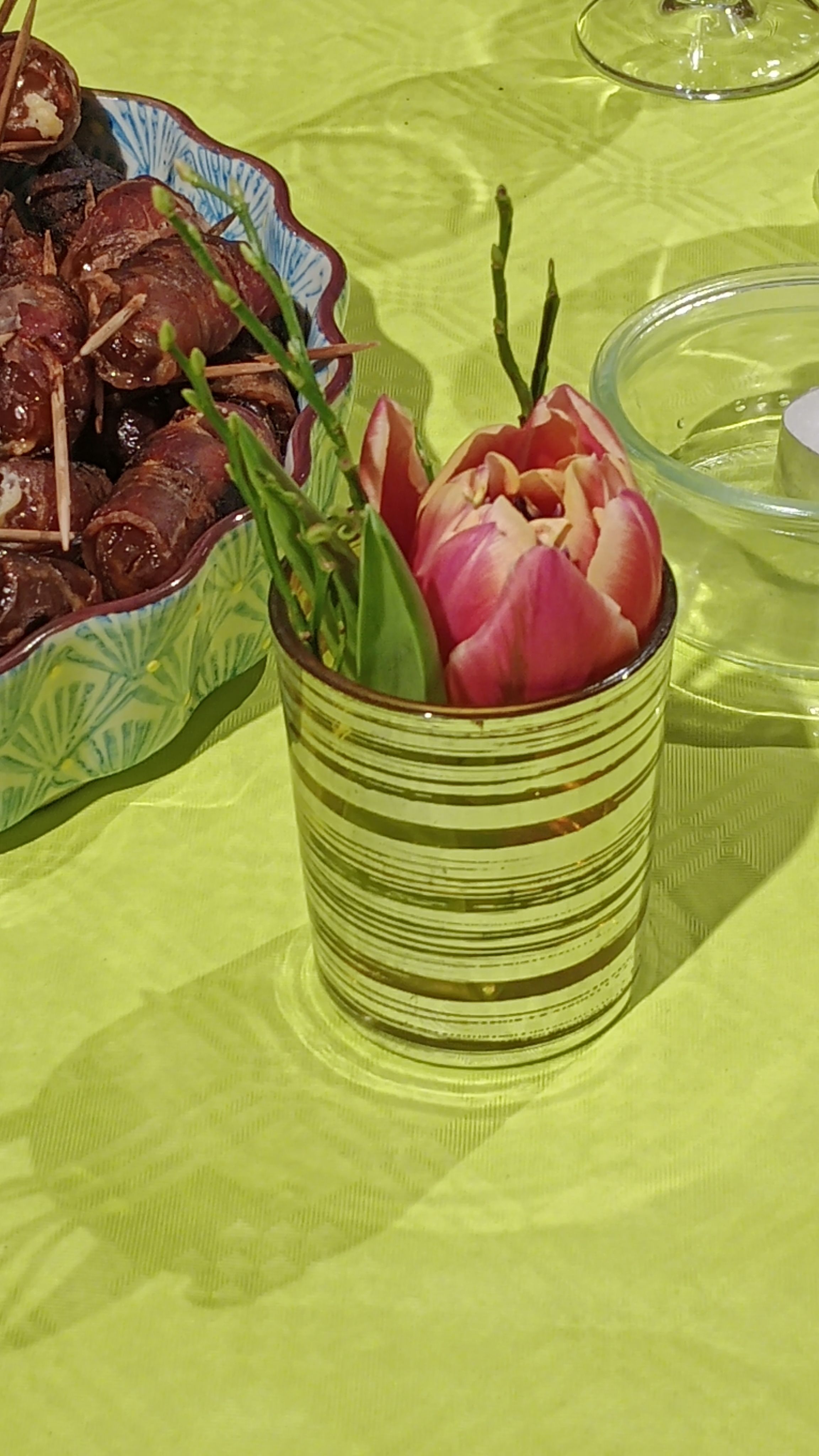 In gelb waren die Tische mit Blumen und Deko hergerichtet, ein umfangreiches Buffett ebenfalls auf gelb bezogenen Tischen lud zum Schlemmen ein –