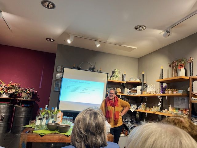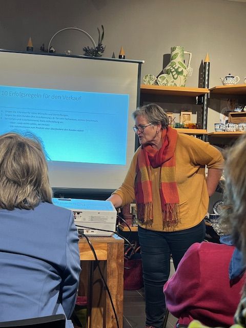 Die Referentin verstand es die wichtigen Verhaltensregeln und das Auftreten der Verkäuferin mit zum großen Teil lustigen praxisnahen Beispielen aus ihrer Tätigkeit ihres Weltladens interessant zu vermitteln. Gespannt und interessiert folgten wir alle den sehr wichtigen hilfreichen Ausführungen!